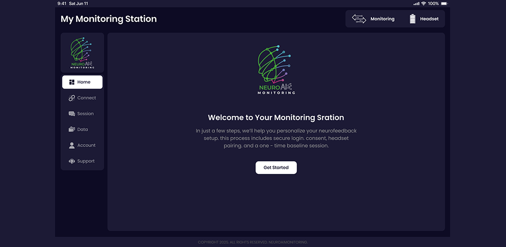 • A discreet wearable device (headband or visor) continuously collects neurobiological signals